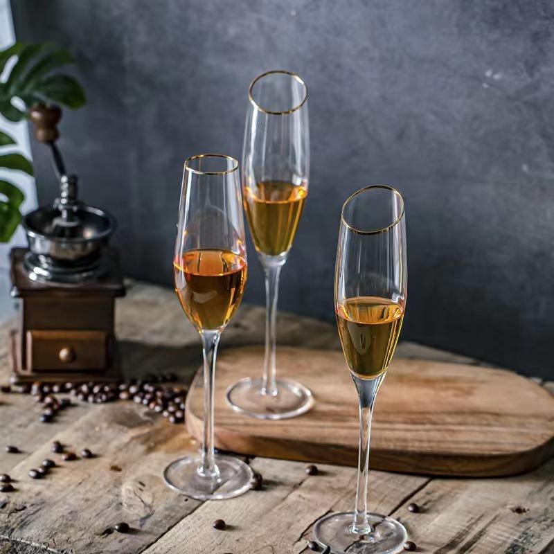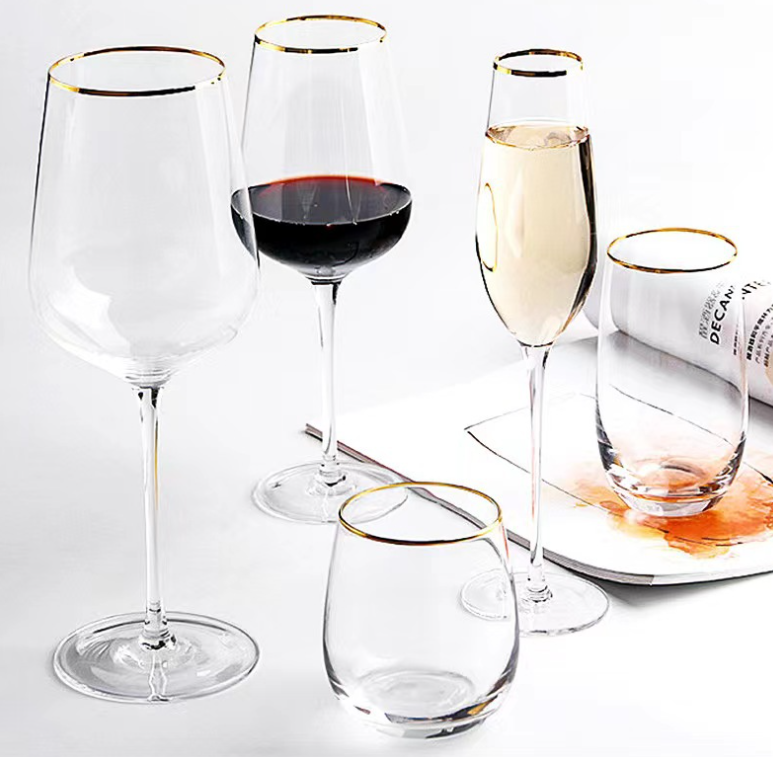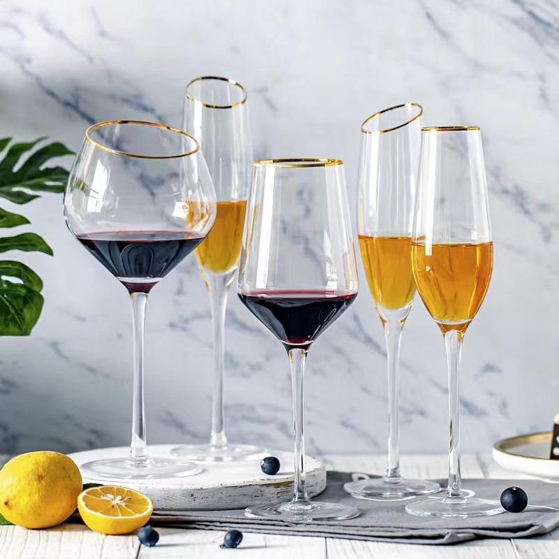 Copa de vino con borde dorado, juego de copas de vino, moda para boda, copas de vino biseladas Burdeos hechas a mano