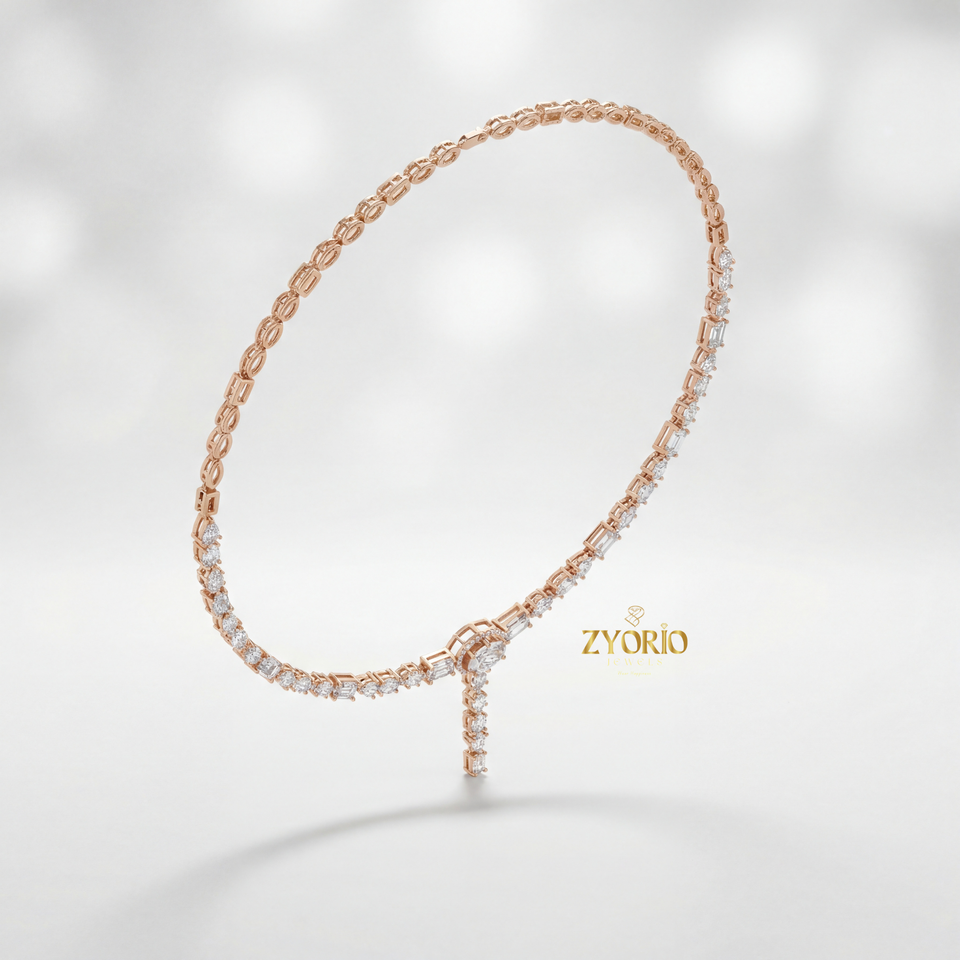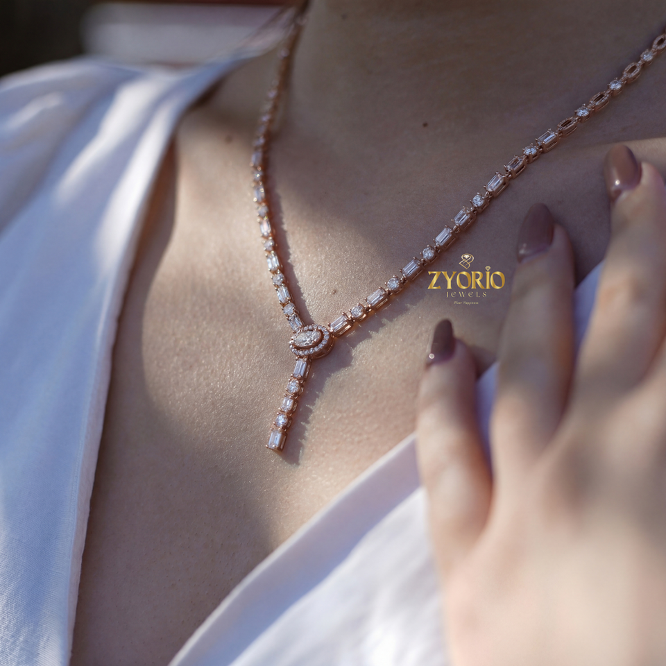 Collar con Colgante en Forma de Y con Diamantes Cultivados en Laboratorio, Chapado en Oro Rosa, Elegante, Brillante, Diseño Atemporal, Moderno, Regalo para Bodas y Fiestas
