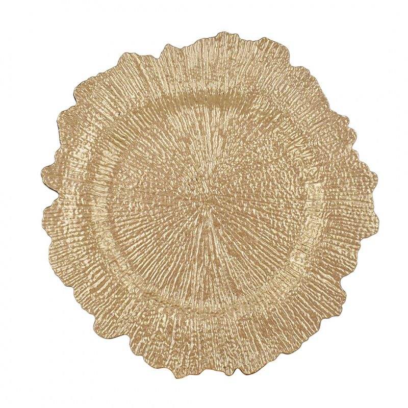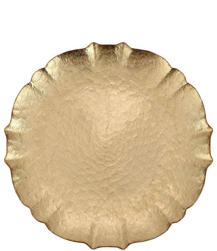 Placa de cargador con volantes dorados con borde orgánico de forma redonda y patrón radial texturizado Acento elegante para cenas y ocasiones de lujo