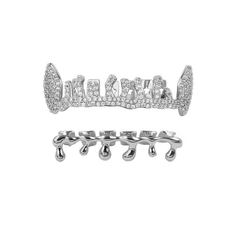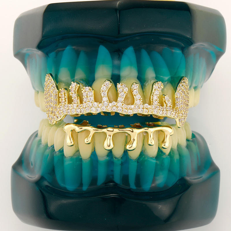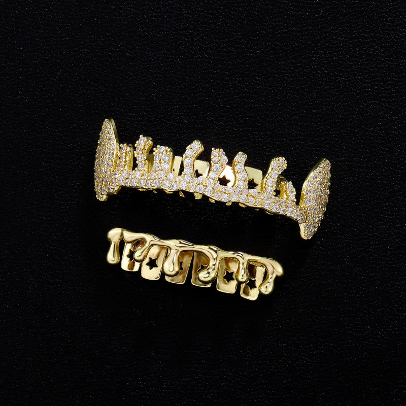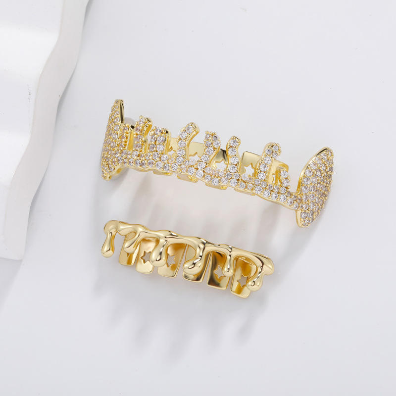 Grillz para dientes, juego de oro, grillz irregulares con patrón de estrella, microincrustaciones, diseño geométrico, para fiestas, unisex, grillz finos