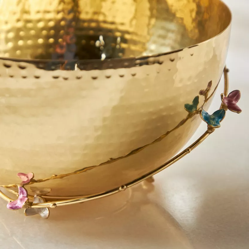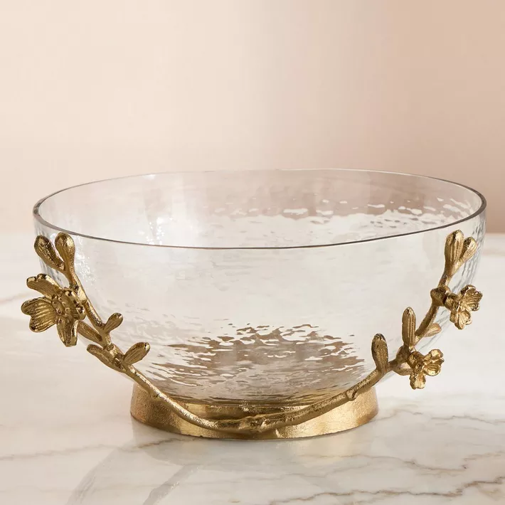 Tazón dorado de acero inoxidable para servir alimentos con diseño floral ecológico para fiestas, venta de fábrica, frutas y nueces, Chocolate y fecha