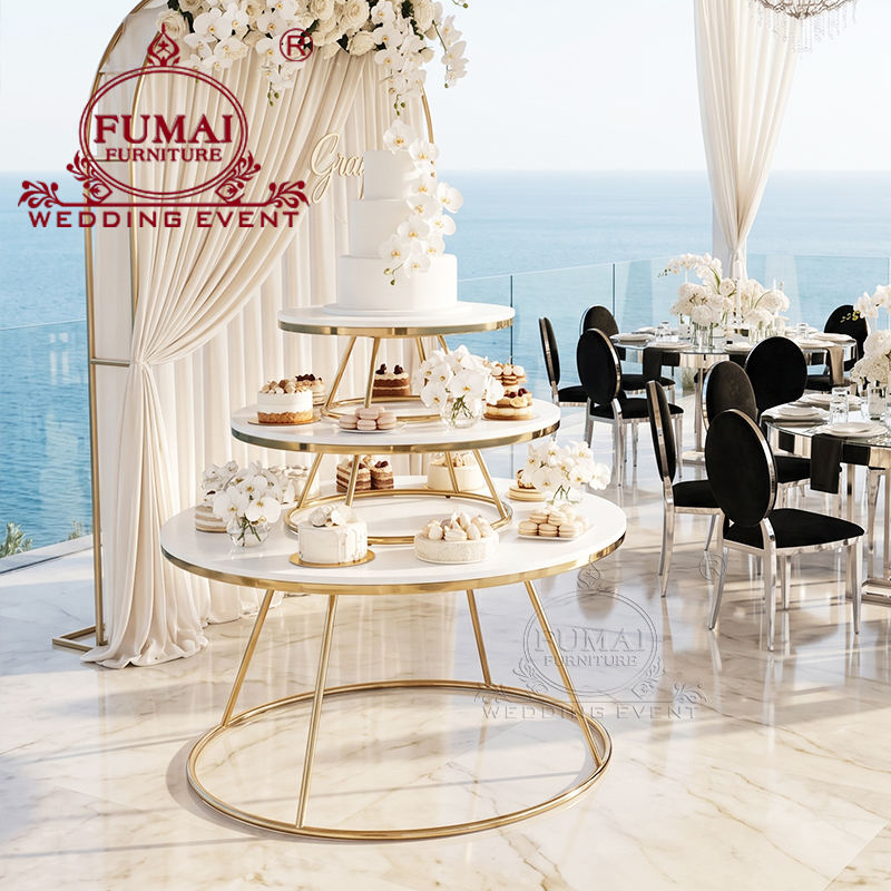 Base para Pastel de Boda Moderna de Acero Inoxidable Dorado para Hoteles, Restaurantes y Decoraciones de Bodas al Aire Libre