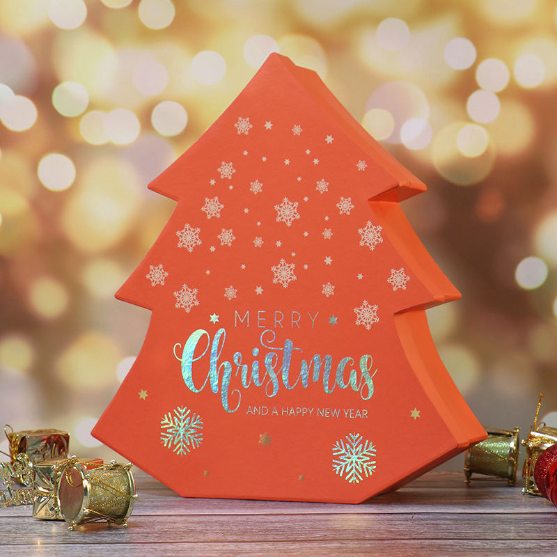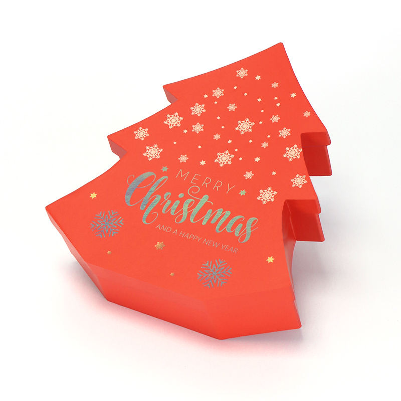 Nombre:Caja de regalos de cartón en forma de árbol rojo de Navidad