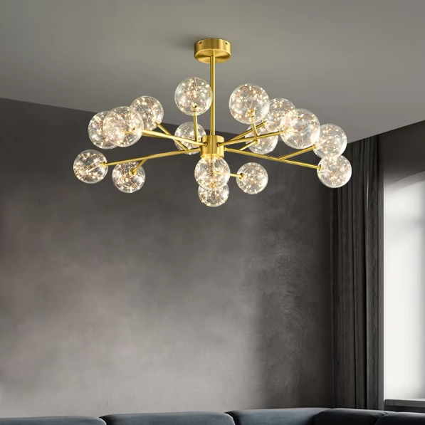 Luz colgante de cobre con forma de estrella dorada, luz colgante de cristal moderna Simple y elegante, Isla de cocina, sala de comedor, dormitorio, luz interior