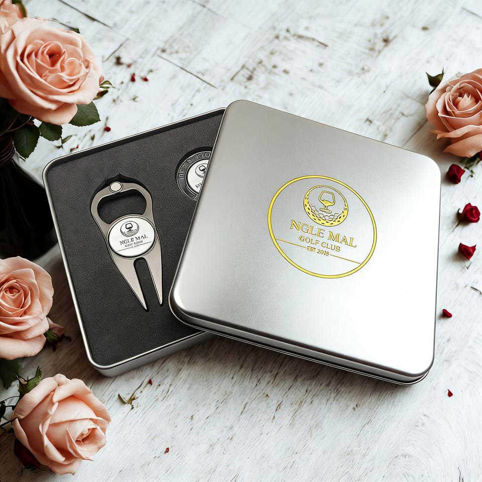 Proveedor Oro: Set de Regalo de Golf Personalizable, Herramienta para Reparar Césped (Divot Tool) y Marcador de Pelota de Metal de Calidad Premium con Diseños de Fichas de Póker