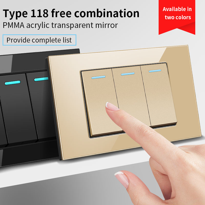 Enchufe de Pared con Interruptor de Luz, Estándar Estadounidense, Tipo C, de Vidrio Templado Dorado, para México, Japón, Tailandia, 118