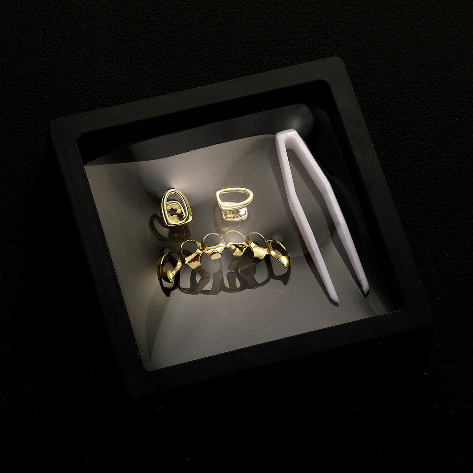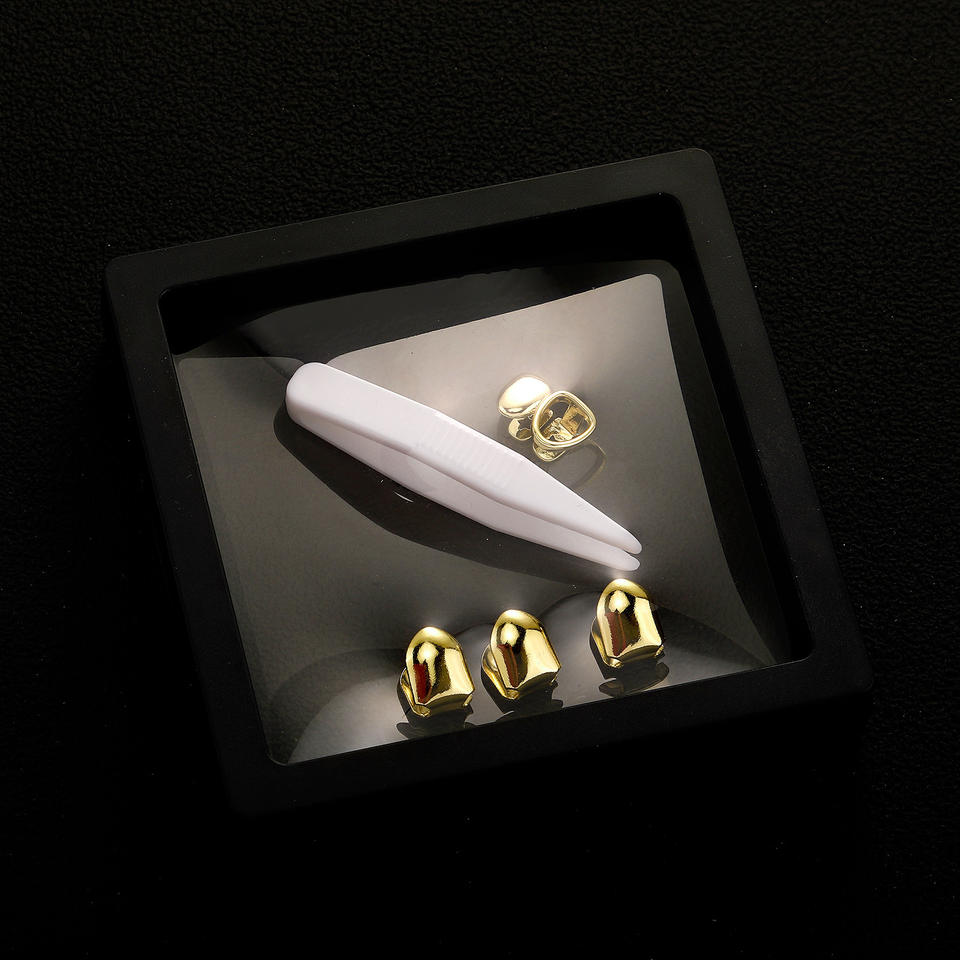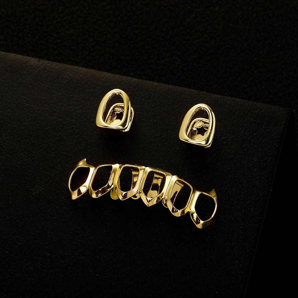 Grillz para dientes, juego de grillz dorados con forma de púa, aleación de cobre, unisex, accesorio de moda hip hop para fiestas