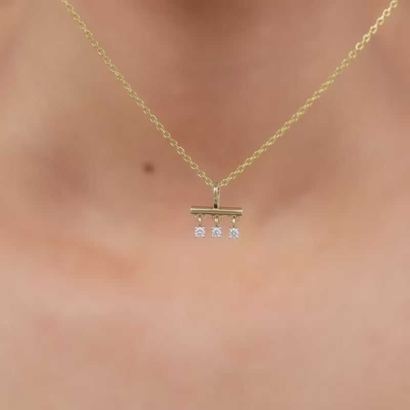 Colgante de diamante cultivado en laboratorio con triple joya de oro, dijes y colgantes de diamantes elegantes