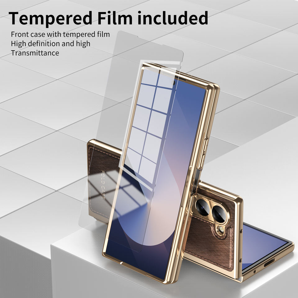 Funda de teléfono con diseño de alambre dorado para Samsung Z Fold 6 5 4 3 con película templada de pantalla, funda de teléfono móvil galvanizada para Z Fold 6