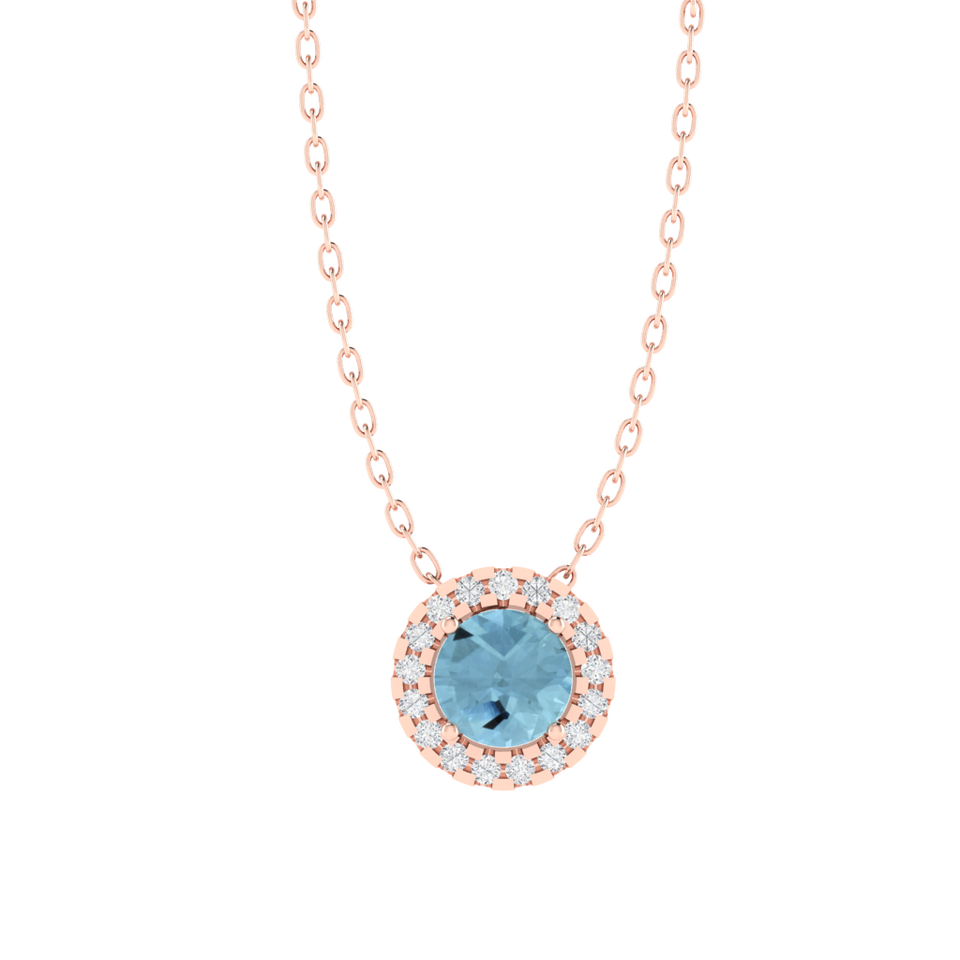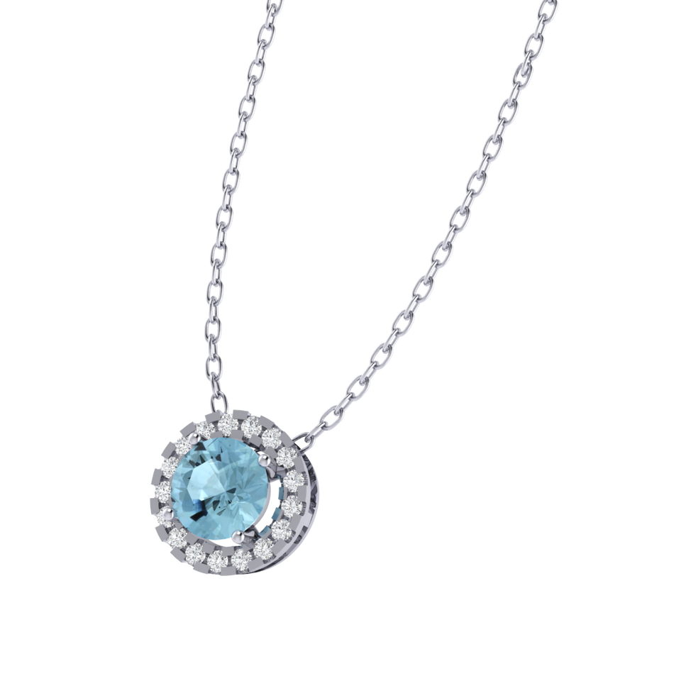 Cadena de 9.8mm Chapada en Rodio con Colgante de Piedra Preciosa de Aguamarina Turquesa de Corte Redondo y Circonita Cúbica Hecha de Plata de Ley