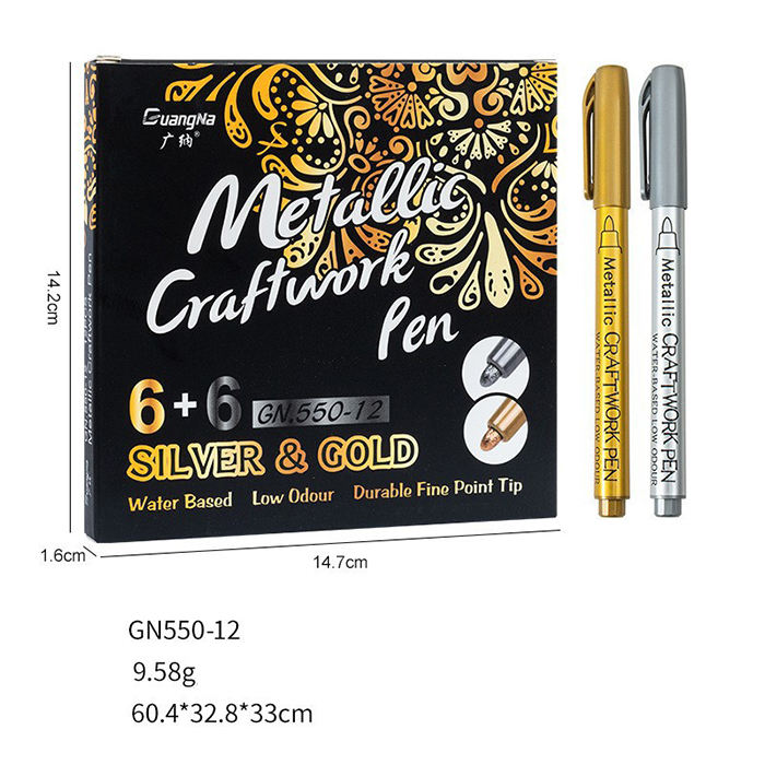 Rotulador impermeable permanente de Metal dorado y plateado, punta fina para tarjetas de felicitación, tinta colorida sobre vidrio y papel