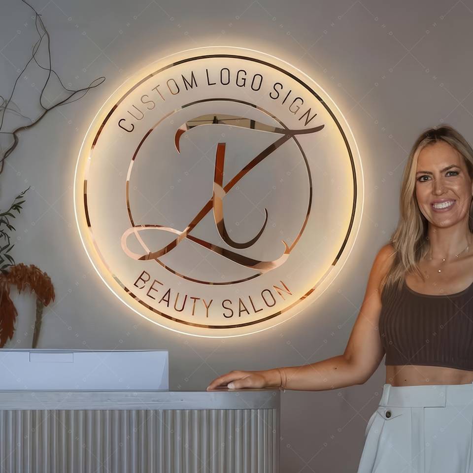 Letrero con Logo Dorado Personalizado, Letrero de Acrílico para Negocio, Letrero con Logo Personalizado para Negocios y Estéticas de Interior