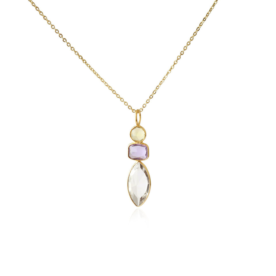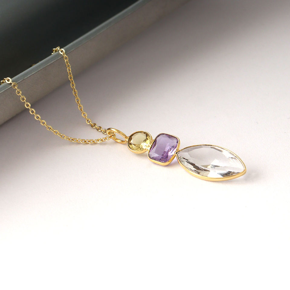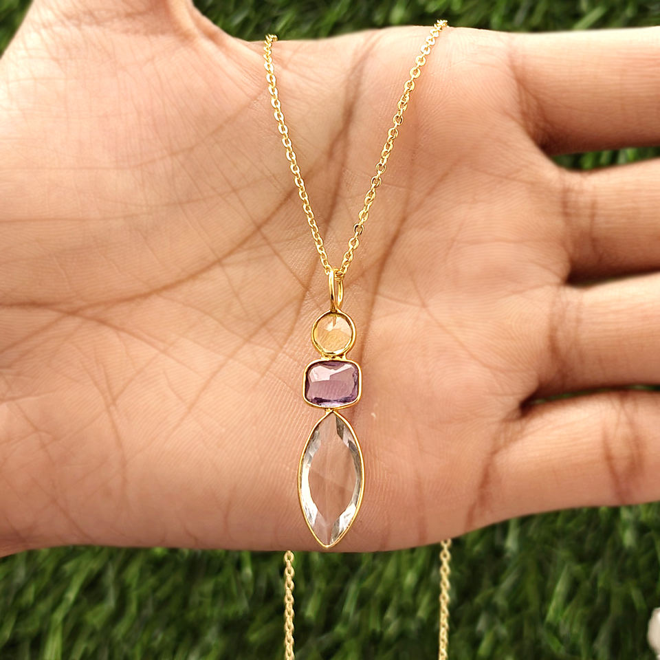 Collar con bisel chapado en oro y múltiples piedras preciosas, colgante de citrino, amatista, cristal de cuarzo, collar de piedras preciosas al por mayor, joyería para mujer.
