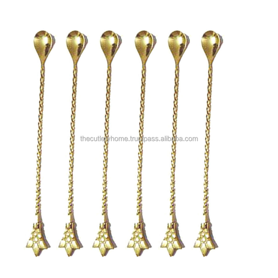 Cuchara de barra de latón con mango acanalado, hecha a mano, dorada y pulida, diseño de concha de barrena