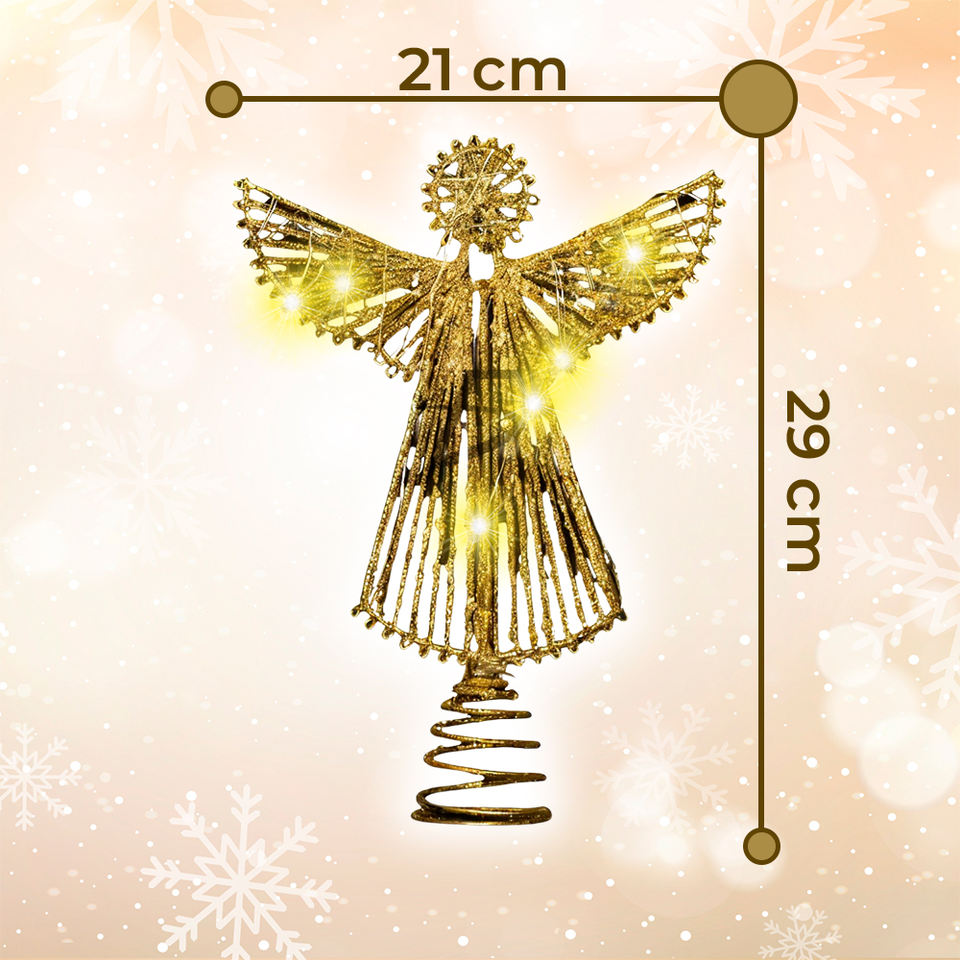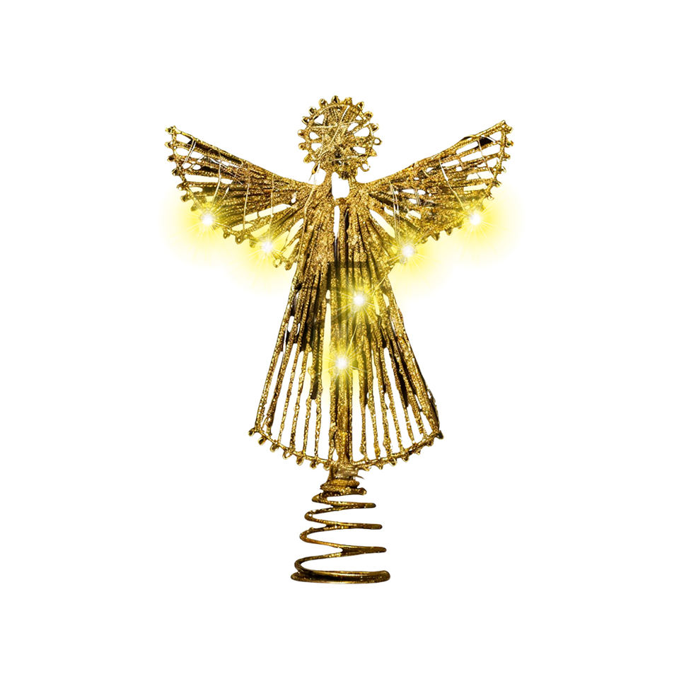 Adorno de árbol de Navidad con ángel dorado de alas abiertas y luces LED cálidas para accesorios de soporte de árbol de Navidad
