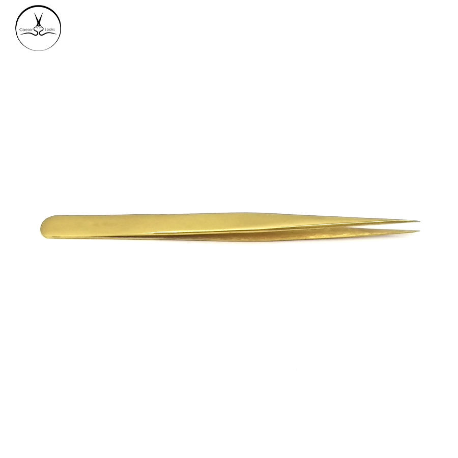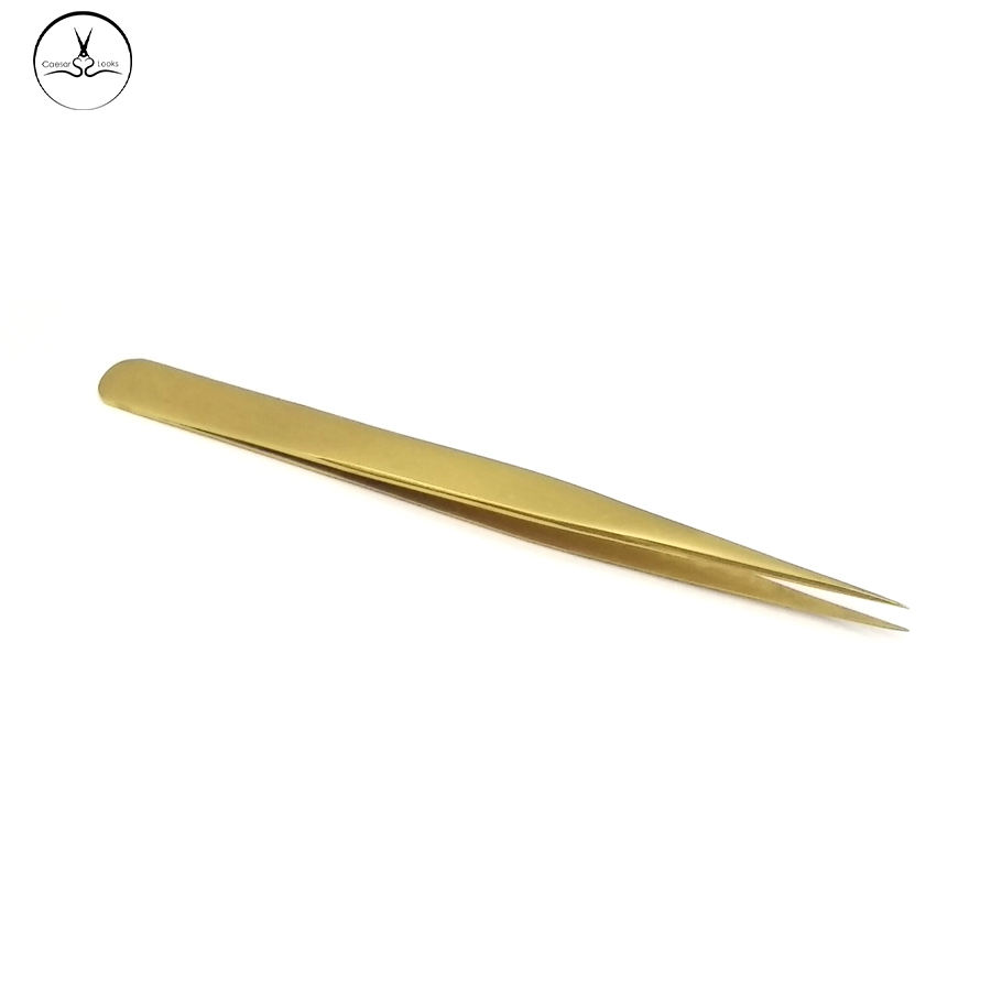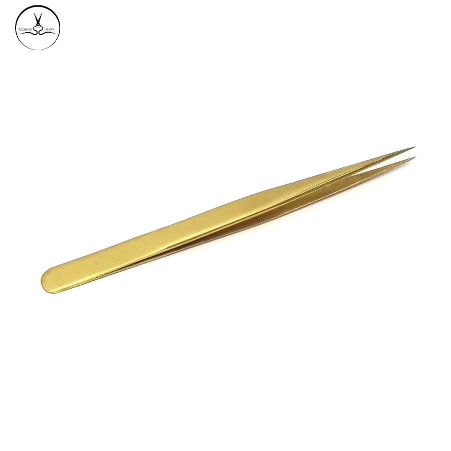 Pinzas para Extensión de Pestañas Golden Caesar, Acero Inoxidable Profesional, Puntas Dentadas y Lisas, Agarre Perfecto, 13mm de Largo