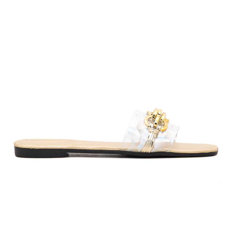 Pantuflas Piscina Mujer-Blanco/Negro-Slap 500 Lea