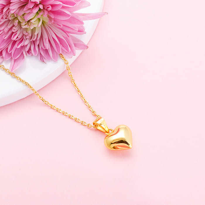 Colgante de corazón de oro clásico dorado de 18 quilates con cadena de eslabones compromiso religioso de moda/Joyería de boda con piedra de perla de diamante