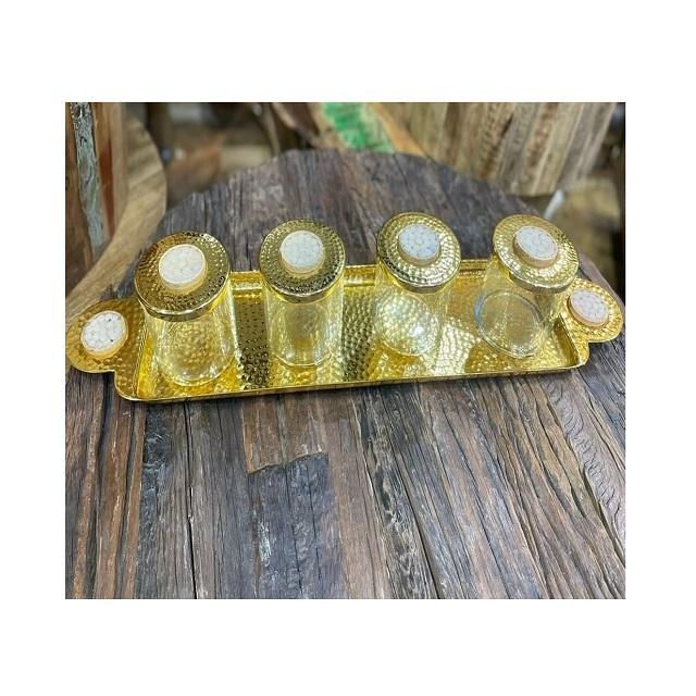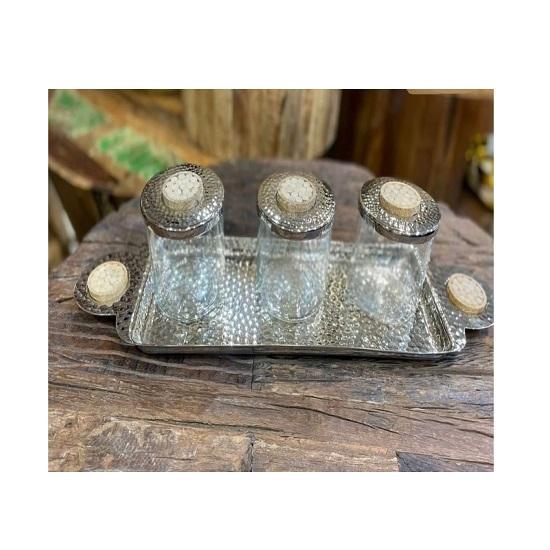Servidor de Frutos Secos de Diseño Atractivo y Forma Redonda, Tarro de Vidrio de Calidad Superior con Bandeja de Aluminio Martillado