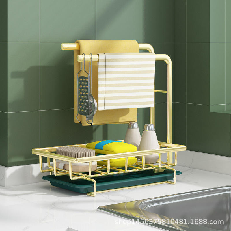 Escurridor de Platos Dorado para Encimera con Bandeja, Estante de Almacenamiento Colgante para Cocina, Sin Necesidad de Instalación, Forma Rectangular MB001