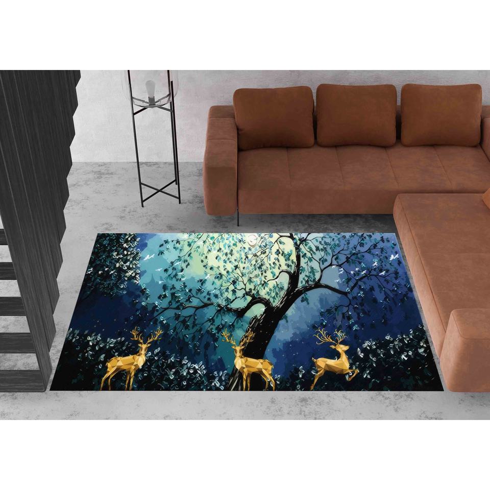 Alfombra Bosque de Ciervos Dorados: Alfombra Antideslizante para Entrada, Alfombra Suave No Tejida