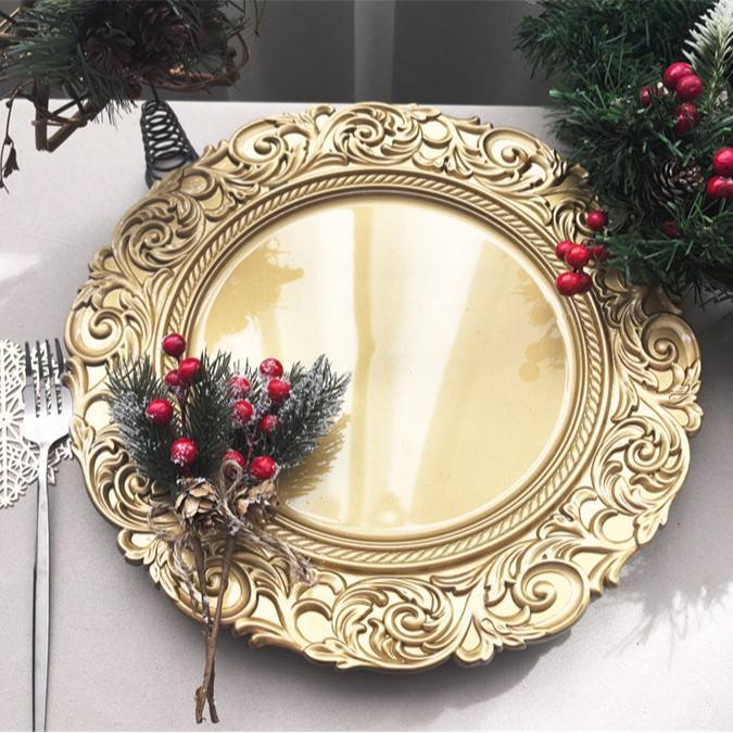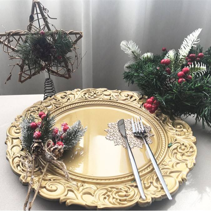 Bandeja Desechable de Plástico Estilo Europeo Golden Export, de Alta Gama, para Restaurante Occidental, Fiesta de Navidad, 13 Pulgadas