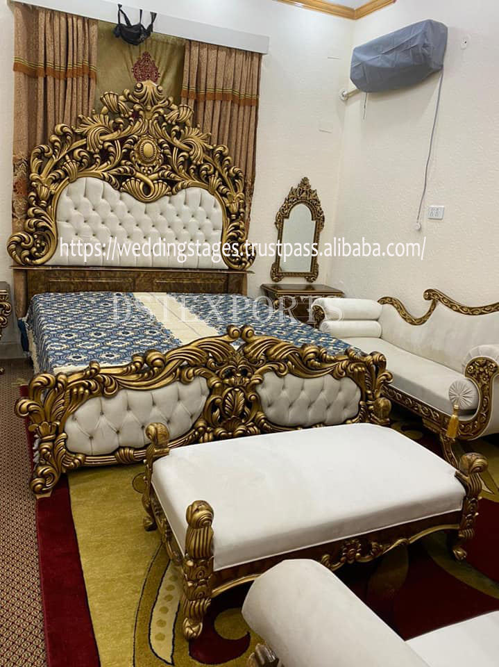 Product name:Golden Finish Teak Wood Bedroom Set For Villas