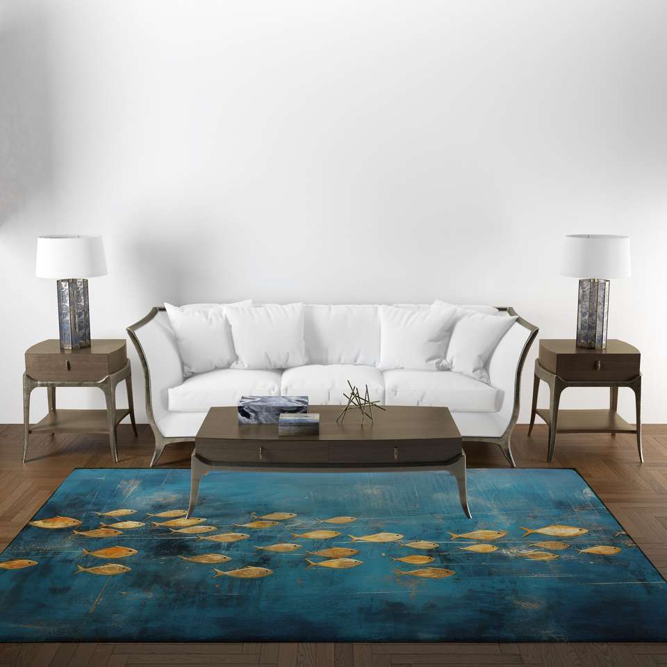 Alfombra de Peces Dorados, Alfombras de Peces, Alfombra Azul, Alfombras de Animales, Alfombra Impresa en 3D, Alfombra Suave con Pelo