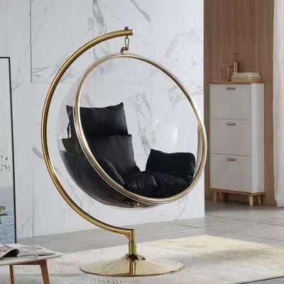 Silla de burbujas acrílica/PVC transparente con marco dorado con columpio colgante para muebles de sala de estar para columpios de Patio
