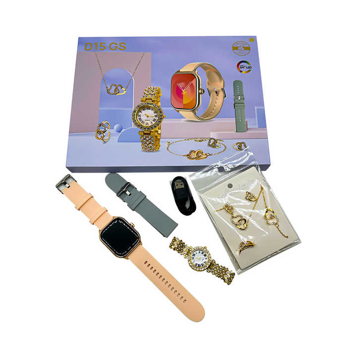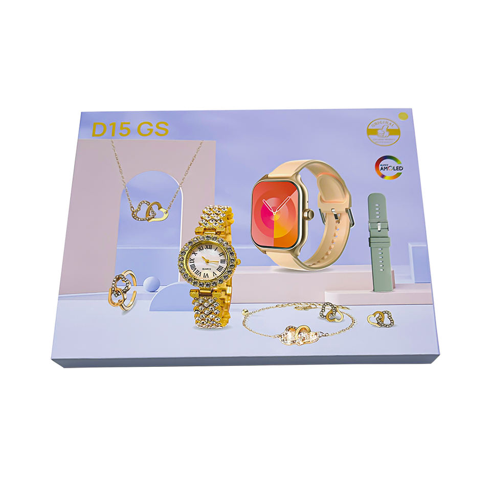 Golden Gift Suit Smartwatch D15GS Relojes inalámbricos Kit A59 Combinación única Plus A58 Reloj inteligente Mujer