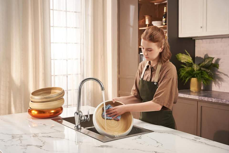 Nombre del producto:Cuenco de ensalada de bambú hecho girar