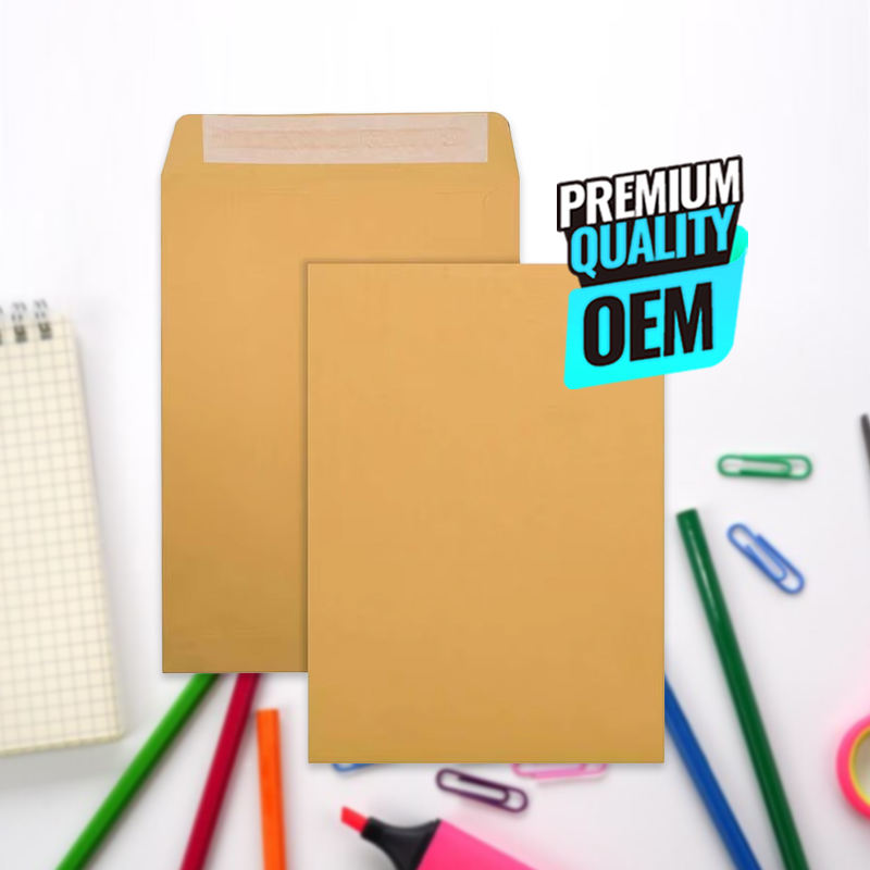 190x265mm Peel Seal Golden Kraft Pocket Sobre 85gsm Papel sin madera para correo comercial y almacenamiento de documentos