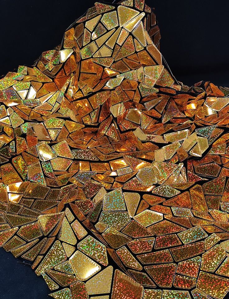 Dorado grande geométrico láser corte brillante corte soluble en agua tessuto da ricamo di paillettes para tela de rendimiento de vestido