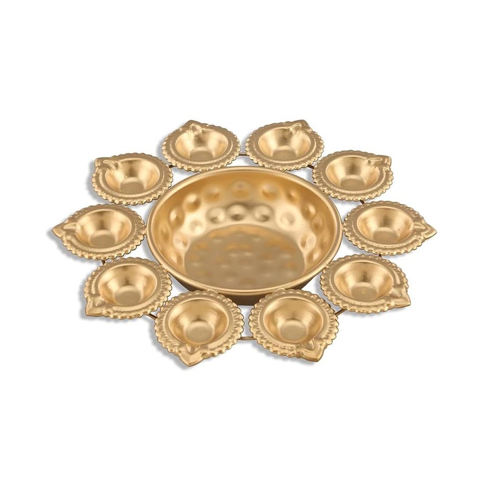 Lámpara de aceite decorativa Premium Diya de metal en forma de loto dorado para el hogar Pooja y decoración festiva