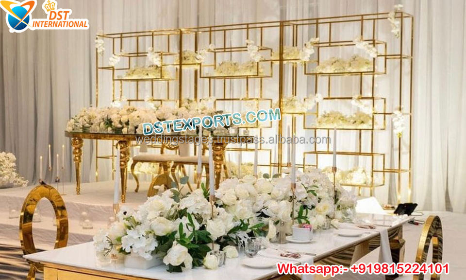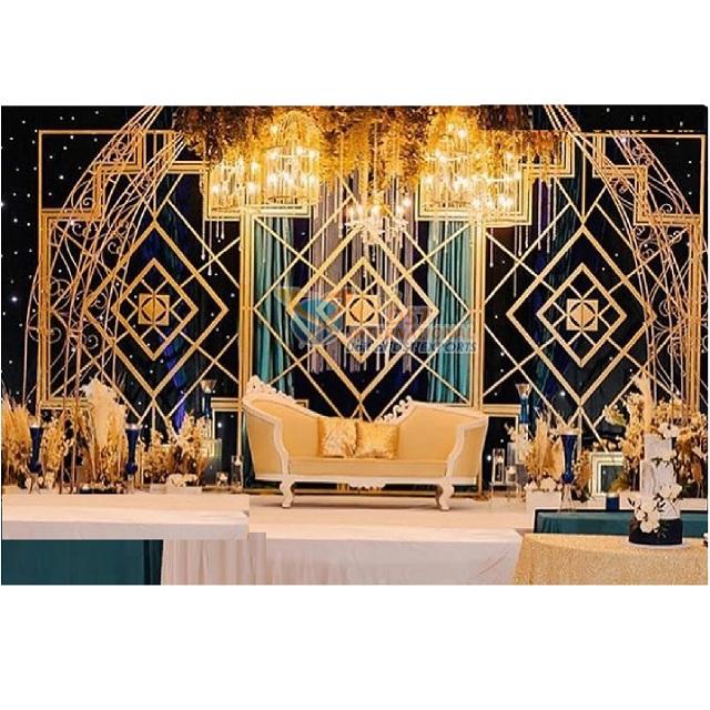 Golden Metal Arches Panel For Wedding Stage