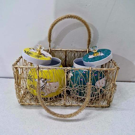Cesto de regalo de Metal dorado, tarros de regalo de devolución, almacenamiento de aniversario de boda, tarros de Metal para galletas, caja de fruta seca dulce, artesanía de boda