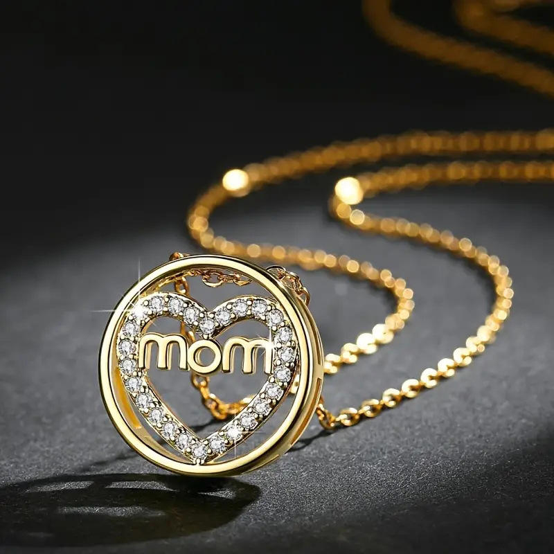Colgante de Corazón Dorado con Pedrería para Mujer, Joyería de Regalo