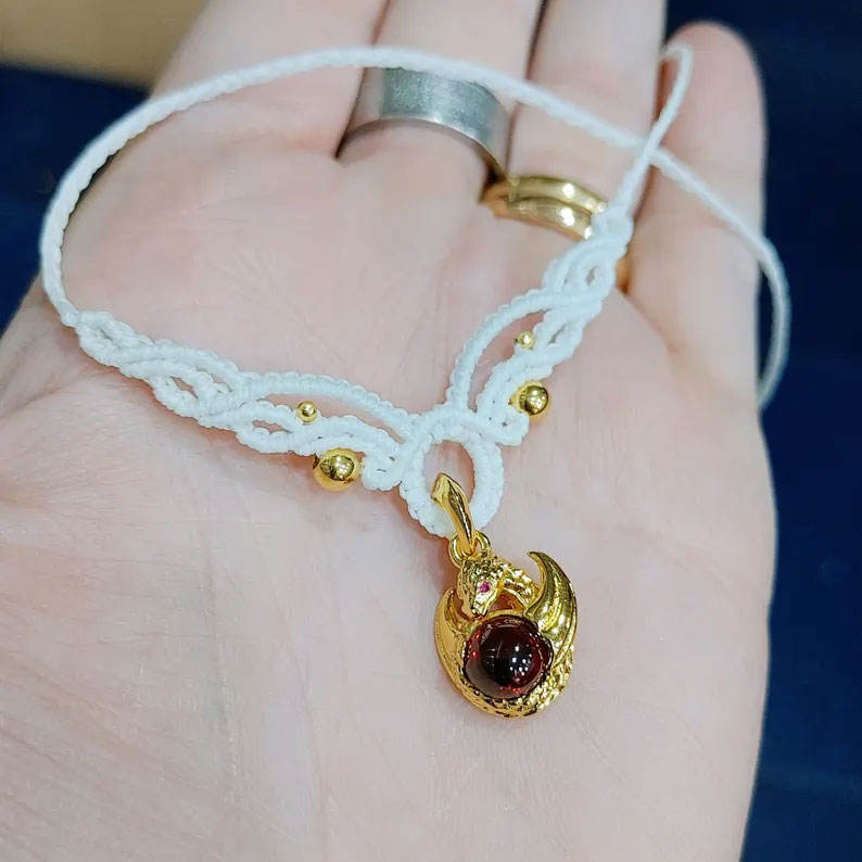 Colgante de Cuarzo Rutilado Dorado con Macramé, Collar Tejido a Mano Color Crema, Forma de Bola de Bambú Budista, Aleación de Zinc, Joyería Clásica de Lujo