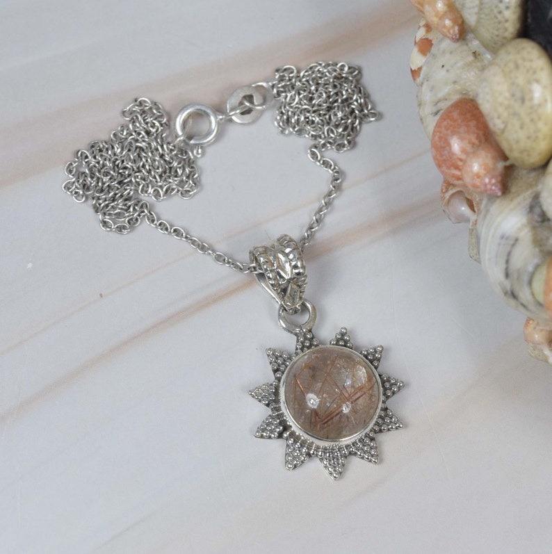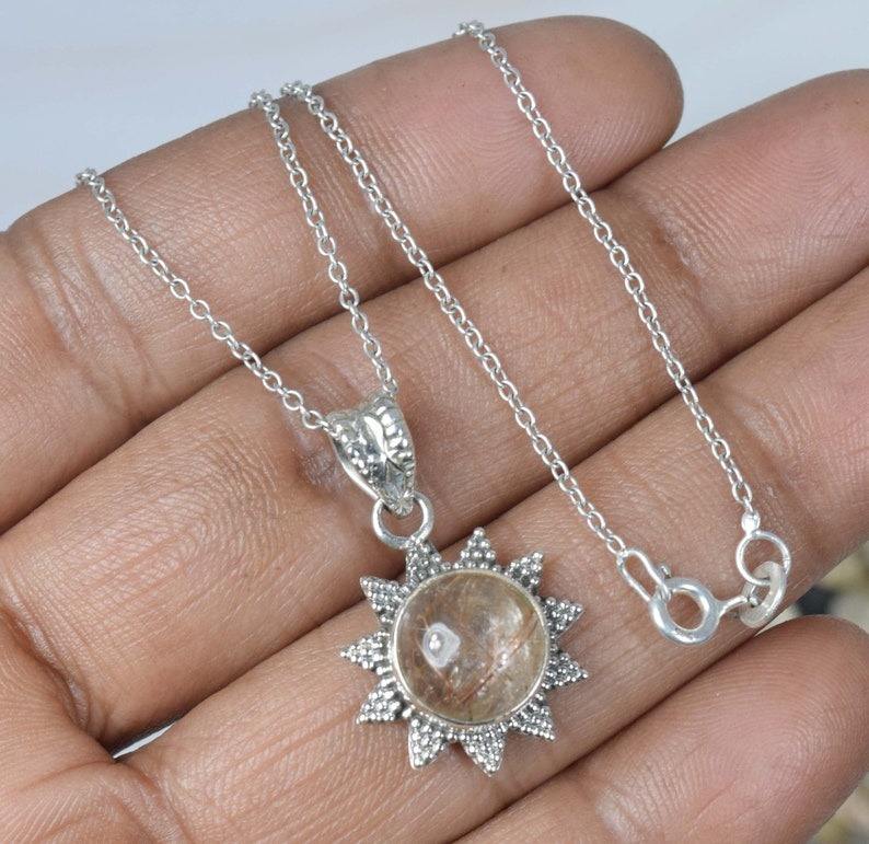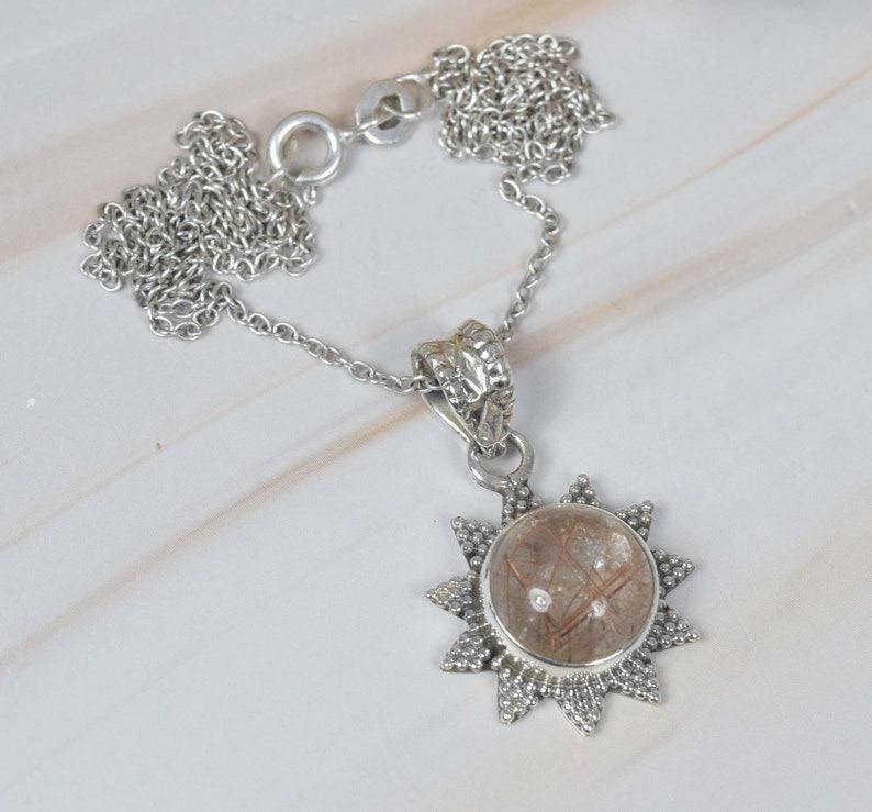 Colgante de moda de rutilo dorado, colgante de piedras preciosas de Plata de Ley 925, joyería hecha a mano, colgante de diseñador de forma redonda, regalo para ella