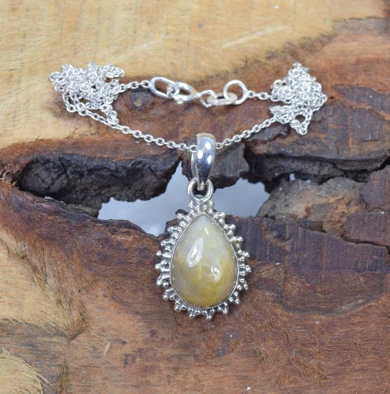 Colgante de moda de rutilo dorado, colgante de piedras preciosas de Plata de Ley 925, joyería hecha a mano, colgante de diseñador con forma de pera, regalo para ella