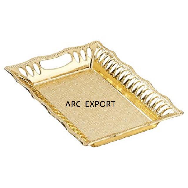 Utensilios de cocina de Metal dorado de acero inoxidable, bandeja de comida, nuevo estilo de diseño, decoración elegante para bodas y eventos, suministro de bandeja para servir alimentos