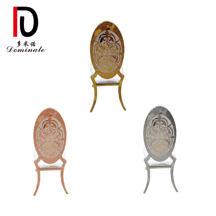 Silla de banquete de boda de acero inoxidable dorado, cojín de terciopelo apilable con respaldo ovalado para restaurantes, hoteles y fiestas