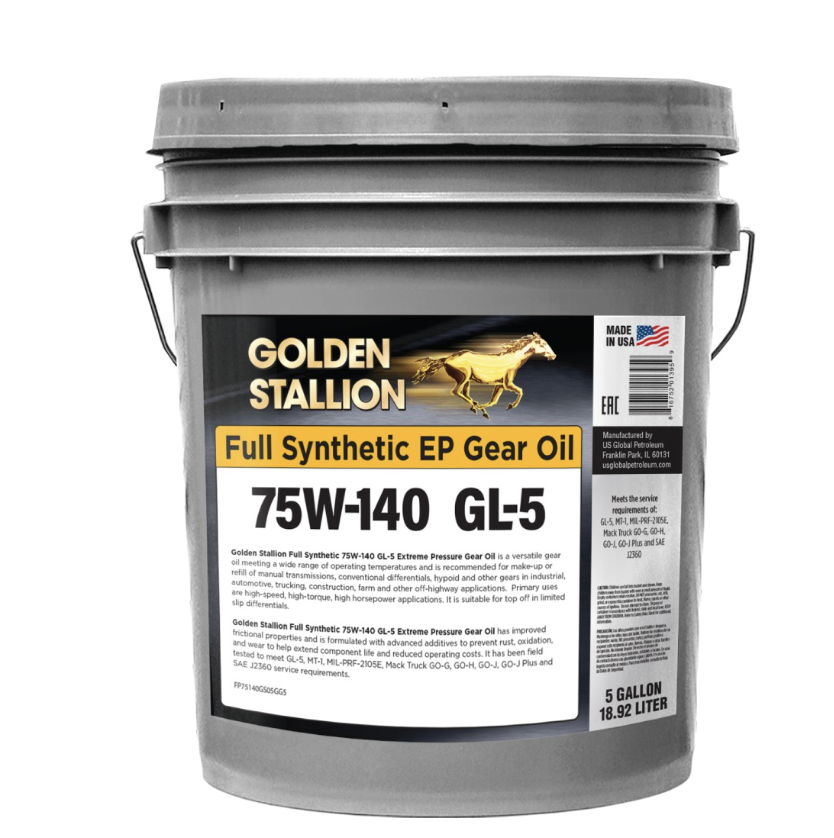 Lubricante Automotriz Sintético Completo Golden Stallion, Antidesgaste, SAE 75W-140 GL-5, Aceite para Engranajes de Extrema Presión, Cubeta de 5 Galones