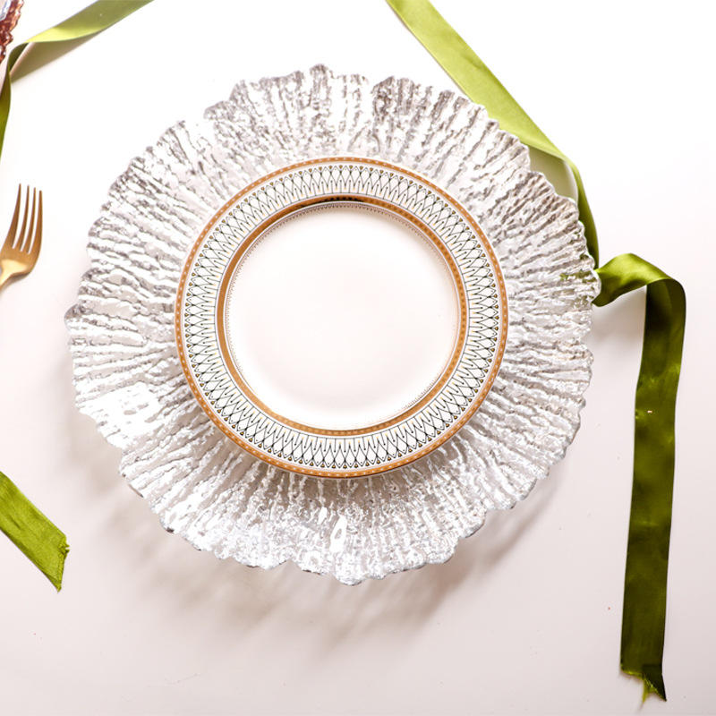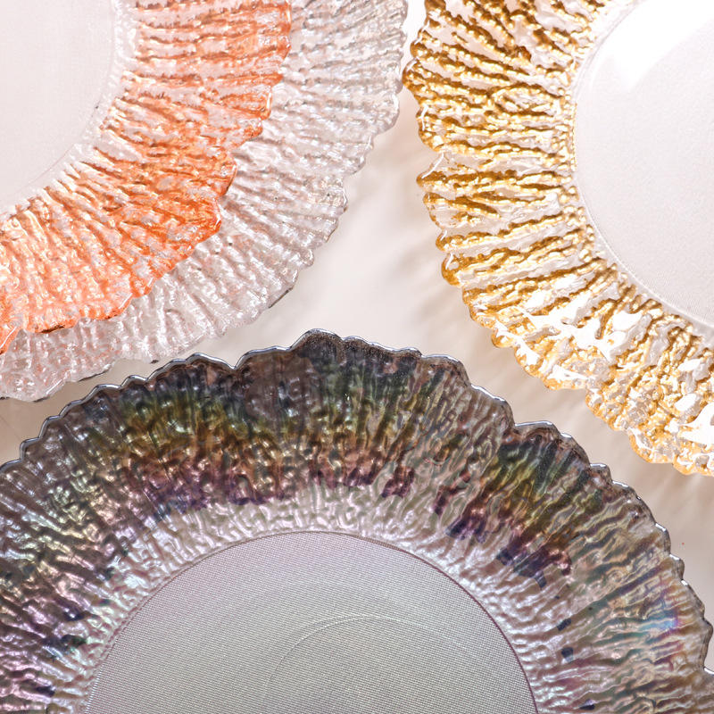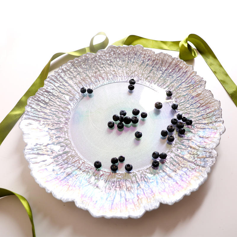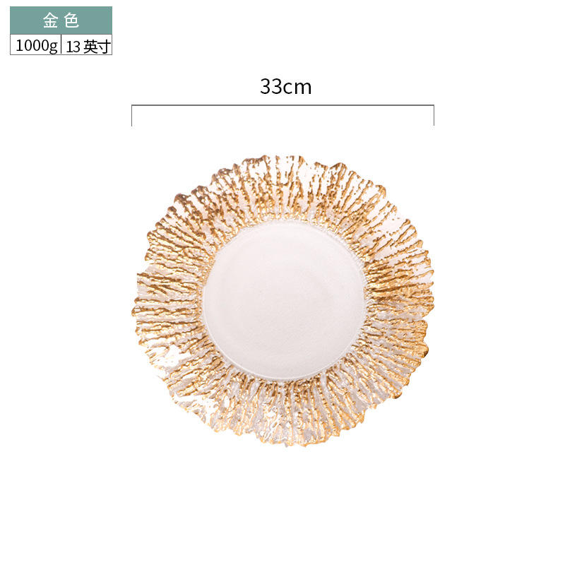 Plato de Vidrio con Diseño de Textura Dorada a Rayas, Plato Colorido para Frutas/Filetes/Cenas, Suministro Directo de Fábrica
