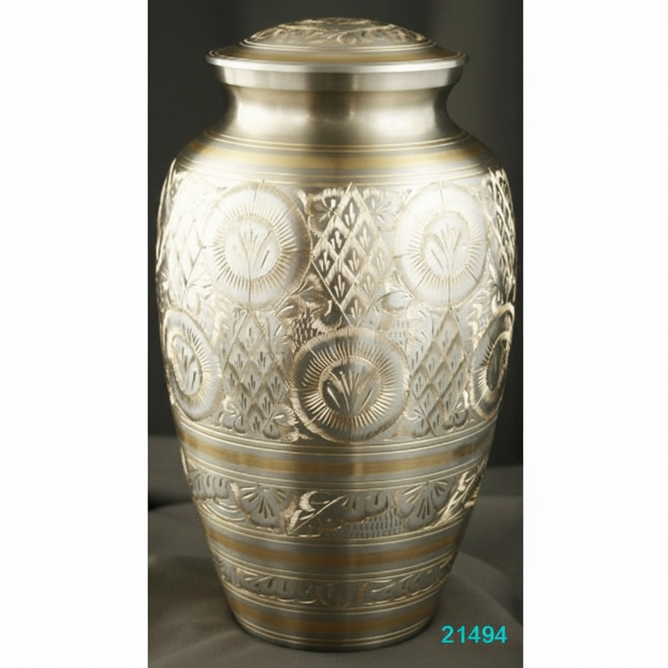 Urna de cremación dorada con diseño en relieve para cenizas humanas-Urna hecha a mano-Urna grande