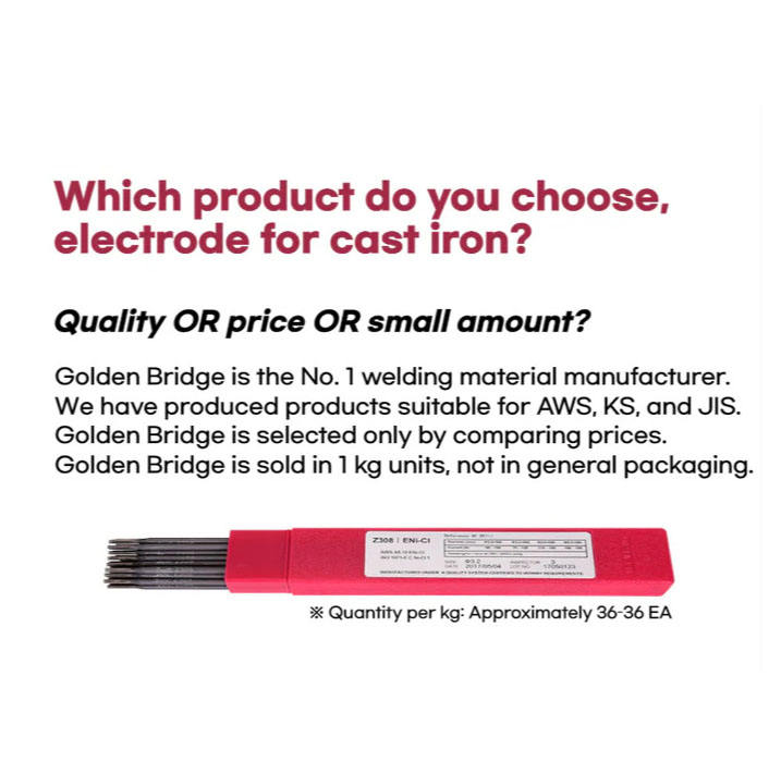 Varillas de Reparación de Hierro Fundido de Alta Resistencia Modelo ENi-CI Doradas, Electrodos de Soldadura para Piezas Delgadas, Corriente Continua, Alto Punto de Fusión