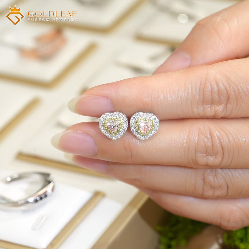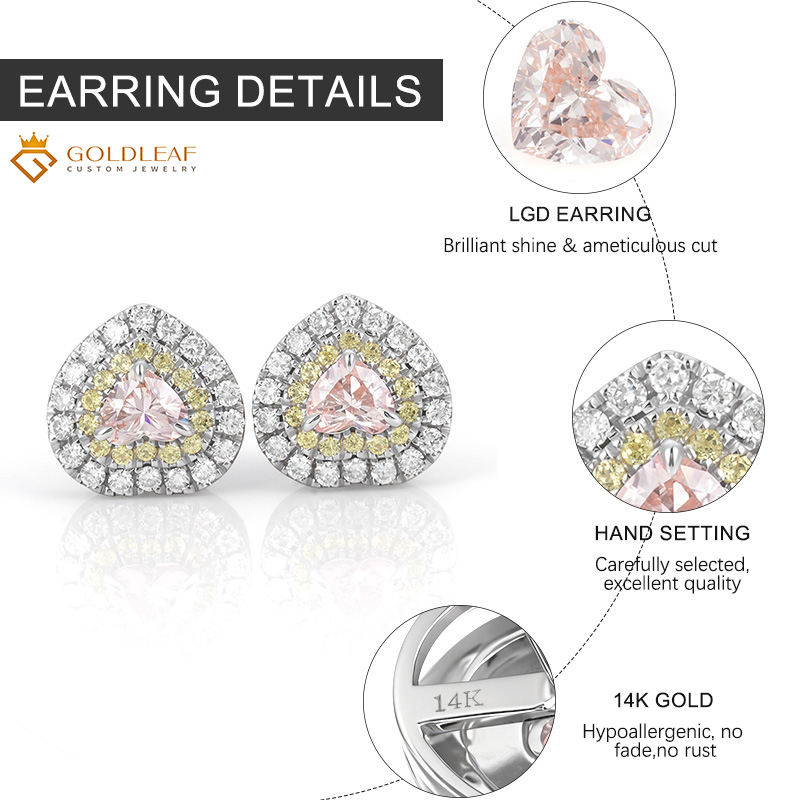 Pendientes de Oro Blanco de 14k con Diamante Cultivado en Laboratorio, Corte Corazón, 2.7g, Unisex, Regalo - Consulte con Nosotros sobre Diamantes Blancos