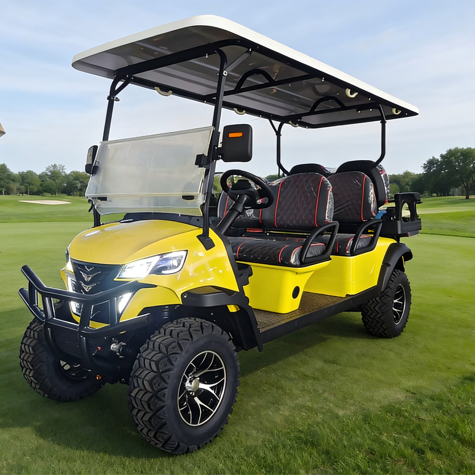 Carrito de Golf Eléctrico de 4 Plazas con Plataforma de Carga Personalizada de Aleación de Aluminio, Batería de Plomo-Ácido de 72 Voltios y 150 Ah, Cubeta Trasera, Alcance de 90 km