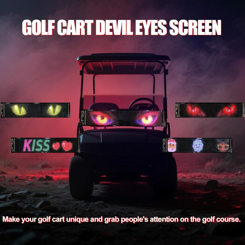 Letrero Luminoso con Ojos de Diablo para Carrito de Golf, Pantalla Flexible para Parabrisas, Letrero LED Animado DIY para Decoraciones, Halloween, Festivales, SUVs