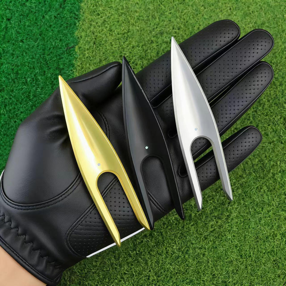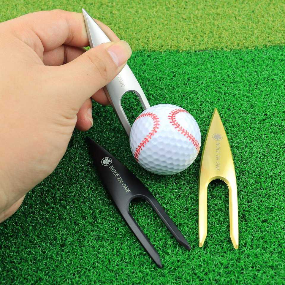 Limpiador de ranuras para palos de golf y herramienta para reparar divots, herramienta de reparación de green de golf de metal duradero con forma de pez, multifuncional para campos de golf